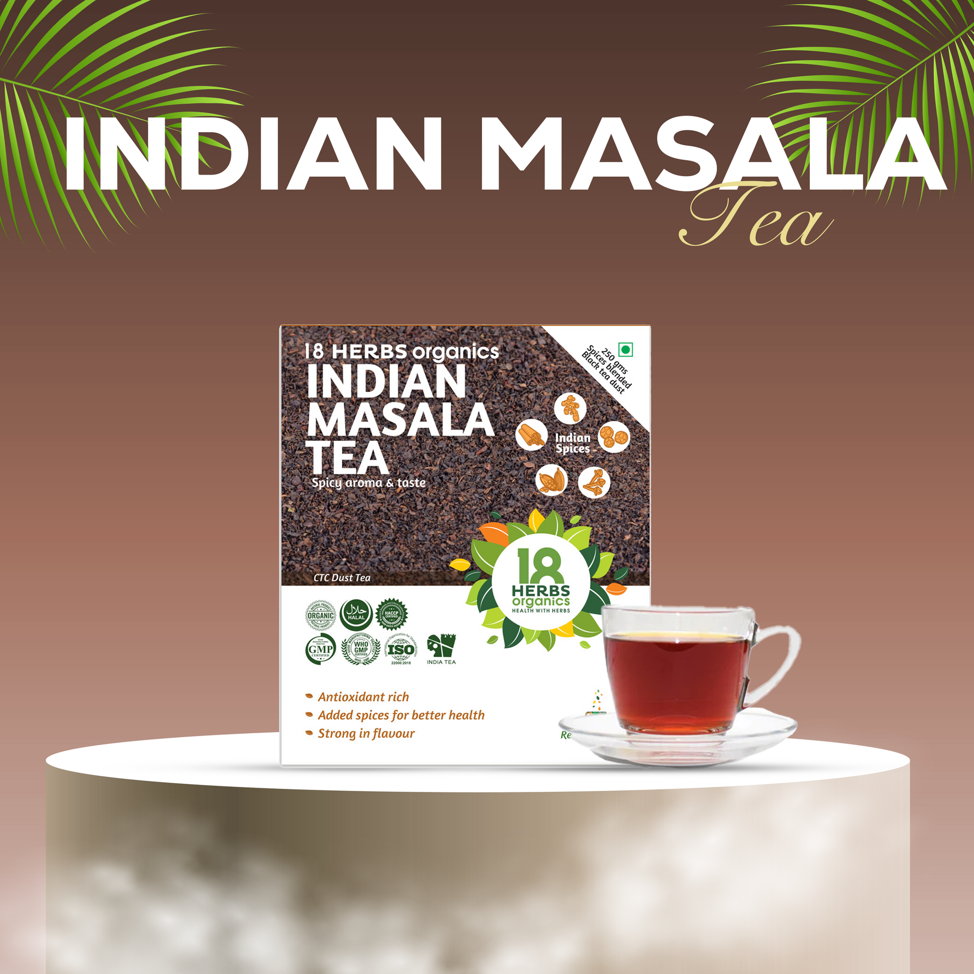 18 HERBS ORGANICS Indian Masala Tea is carefully sourced from fresh tea gardens in the Nilgiri mountains of South India.