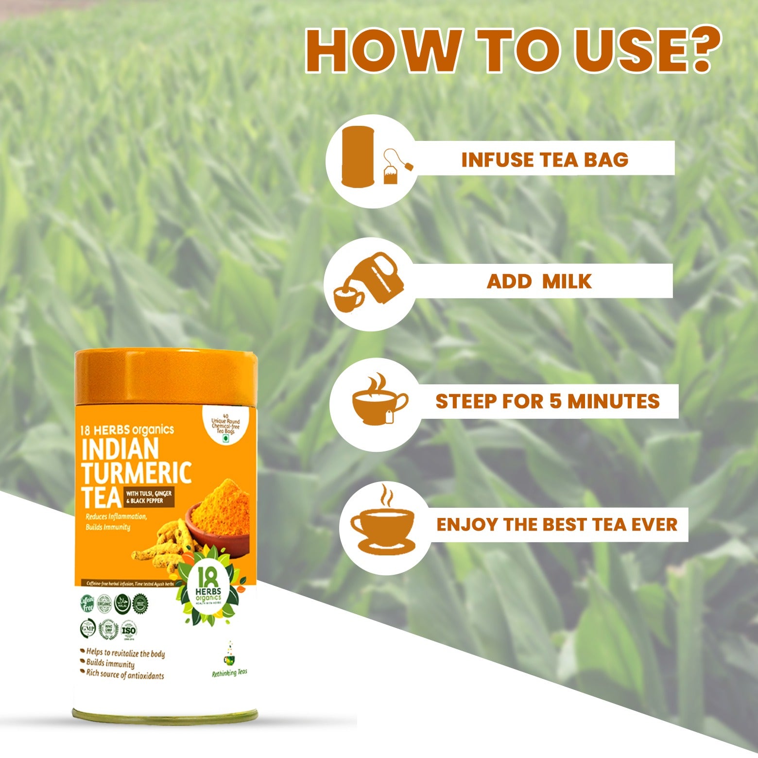 18 Herbs Organics Indian Turmeric Tea (TIN)