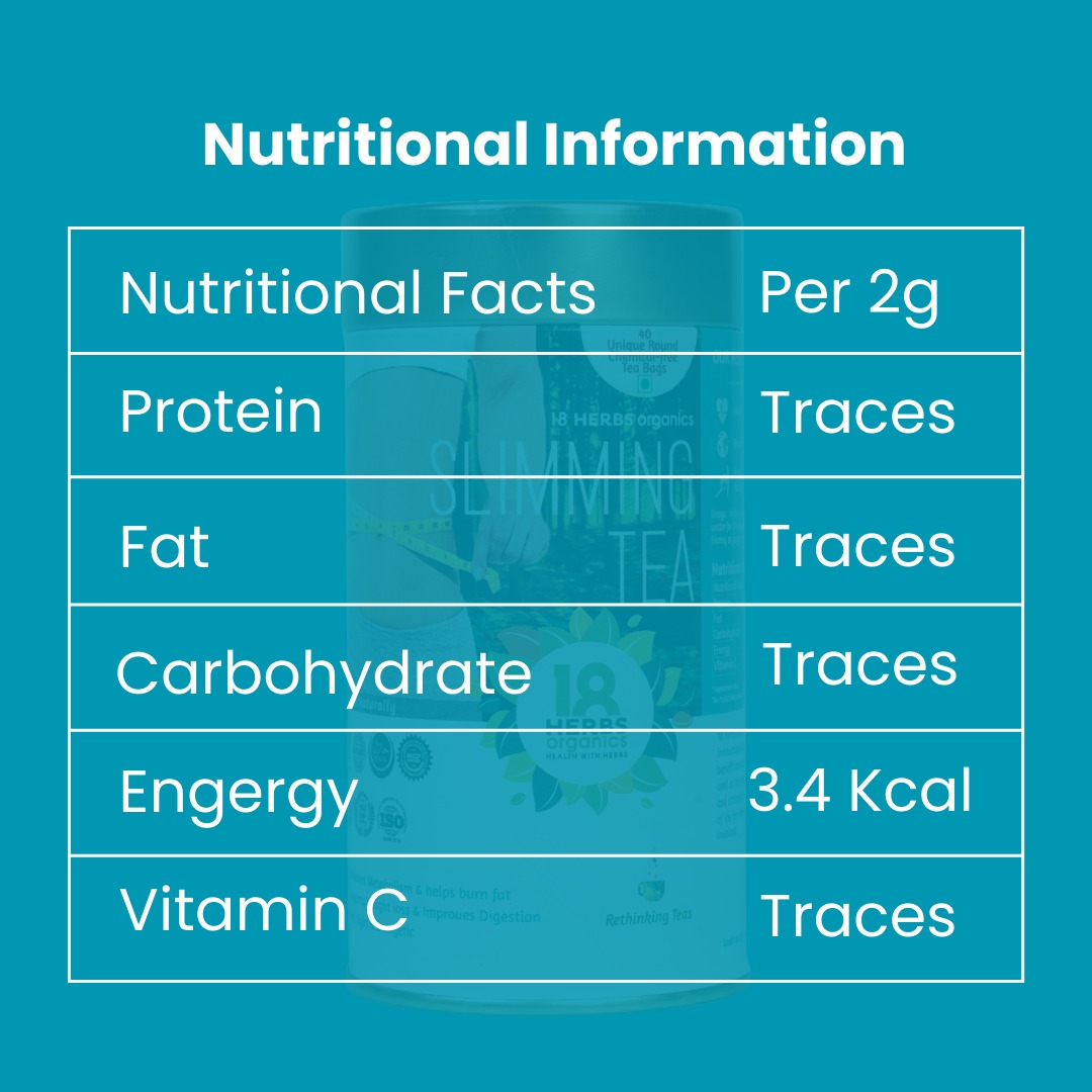 18 Herbs Organics Herbal Slimming Tea Bags Health & Wellness Tea 40 Count (TIN)